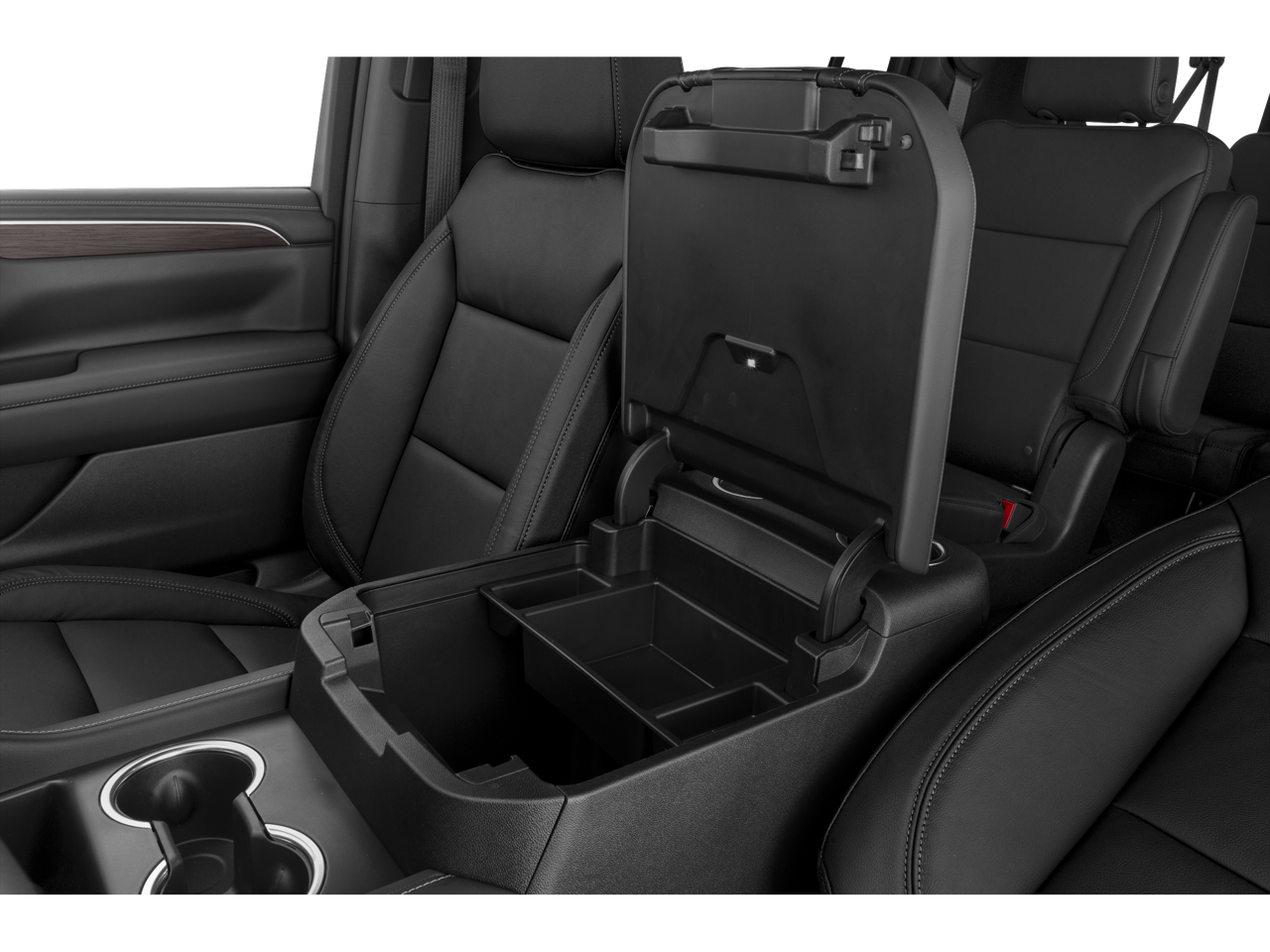 • Console, Floor, Power-Sliding Center: Provides secure storage, a sliding armrest, and cup holders for your second-row passengers.